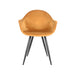 Eetkamerstoel Forli, uitgevoerd in oker kleurig fluweel heeft een zeer luxe en comfortabele kuip voorzien van elegante rondingen en armleuningen. De prachtige duurzame basis als kuip gestoffeerd met het mooiste fluweel zorgt voor een comfortabele, stevige zit. Forli is in het bezit van licht uitlopende poten, uitgevoerd in zwart metaal, waardoor de stoel stevig op de grond staat en ook nog eens een leuke speelse touch krijgt.