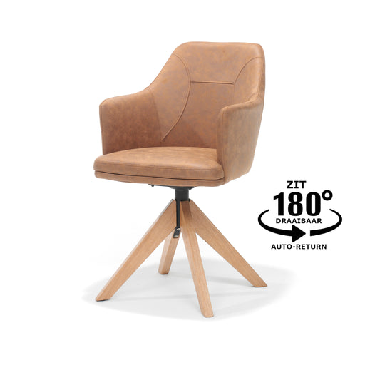 Calvin armstoel draaivoet Eiken Stof Soft Cognac Materiaal STOF SOFT Zit diepte 45 CM Zit hoogte 49,50 CM Verpakking hoogte 0.57 Verpakkin...