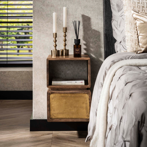 Nachtkastje Brass XS zwevend 1 lade / Massief mango zand