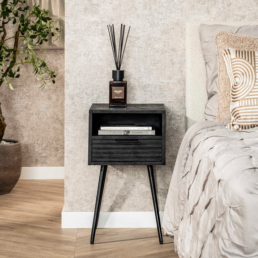 Nachtkastje Marina 1 lade / Massief mango zwart