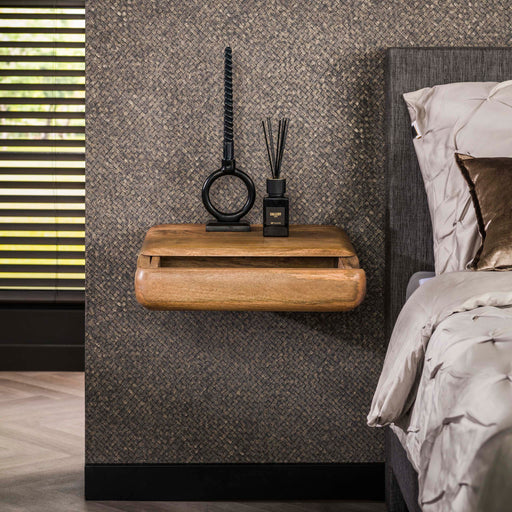 Nachtkastje Sleek zwevend 1 lade / Massief mango zand